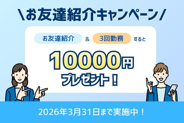 ご紹介されたお友達へはもちろん、紹介しれくれたあなたへも10,000円をプレゼント!